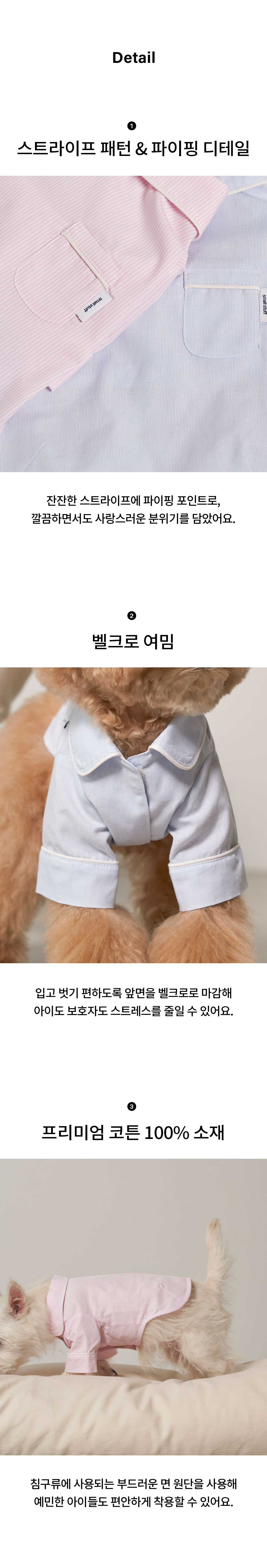 베이직한 디자인과 좋은 소재로 제작되어 편안하게 매일 입을 수 있는 반려동물 슬립웨어입니다.