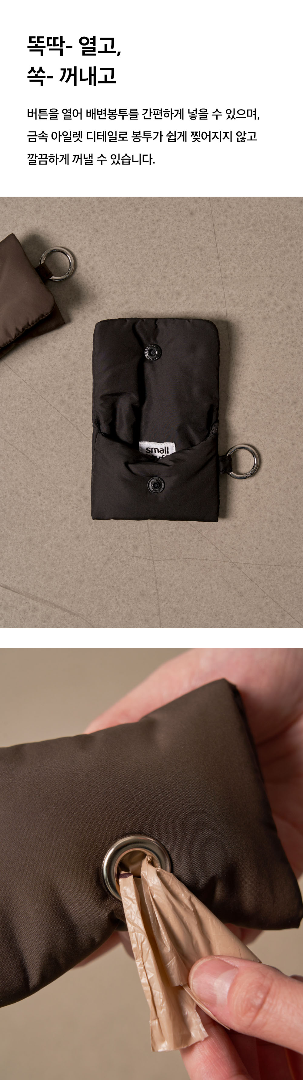 가방이나 리드줄에 걸어 배변봉투를 간편하게 휴대하고 사용할 수 있으며,클라우드 캐리백과 동일한 소재로 제작되어 셋업 연출이 가능합니다.