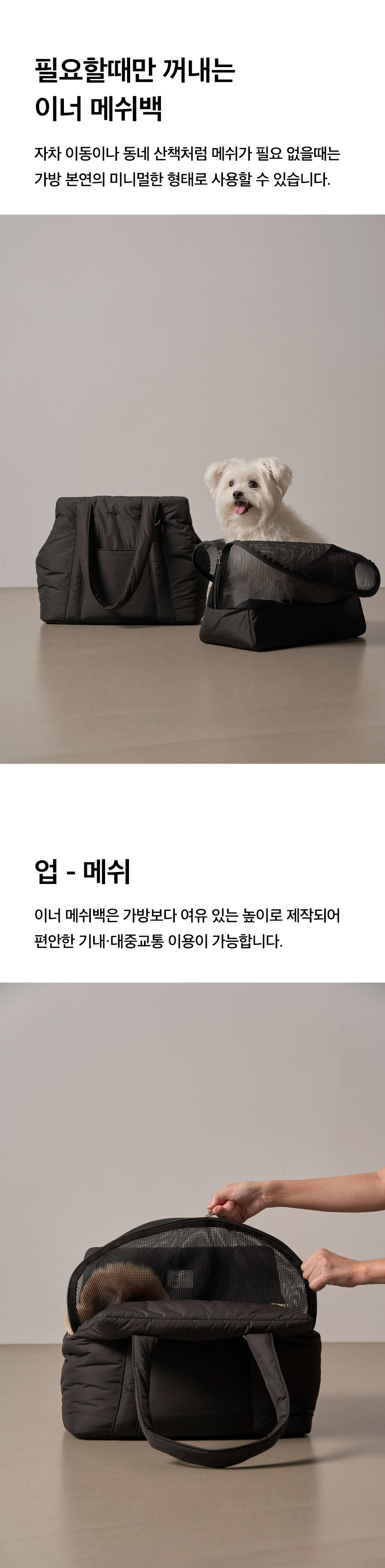 대중교통이나 기내 이동 시 메쉬 커버가 필요한 상황에 클라우드 캐리백 내부에 넣어 사용할 수 있는 이너메쉬백으로, 하단부에 충전재를 더해 메쉬 특유의 흐물거림을 줄이고 안정감 있는 사용감을 제공합니다.