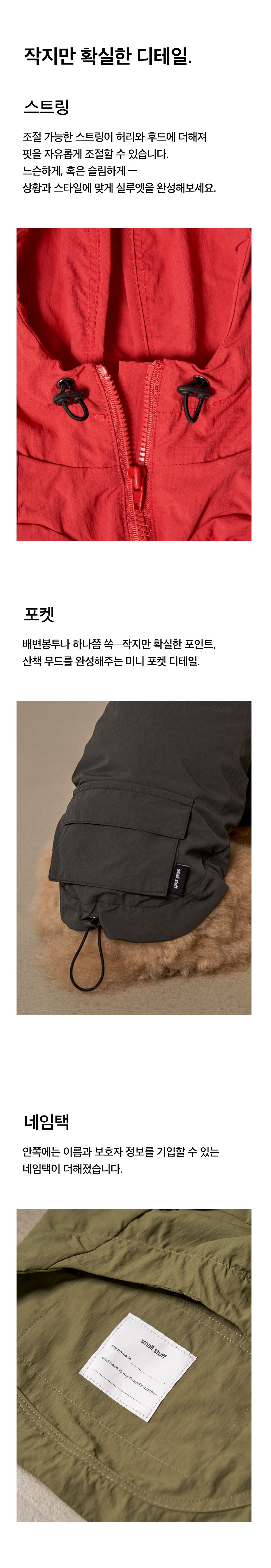립스탑 원단으로 완성된 후디드 쉘 자켓입니다.견고한 조직감과 부드러운 착용감이 조화를 이루며,발수·방풍 기능으로 변덕스러운 날씨에도 안정적인 착용이 가능합니다.일상과 아웃도어를 넘나들며 자연스럽게 어우러지는, 간절기 아우터입니다.