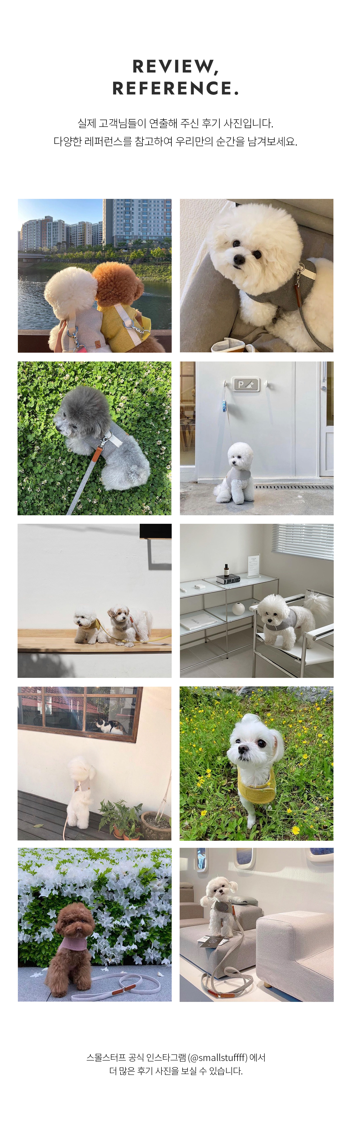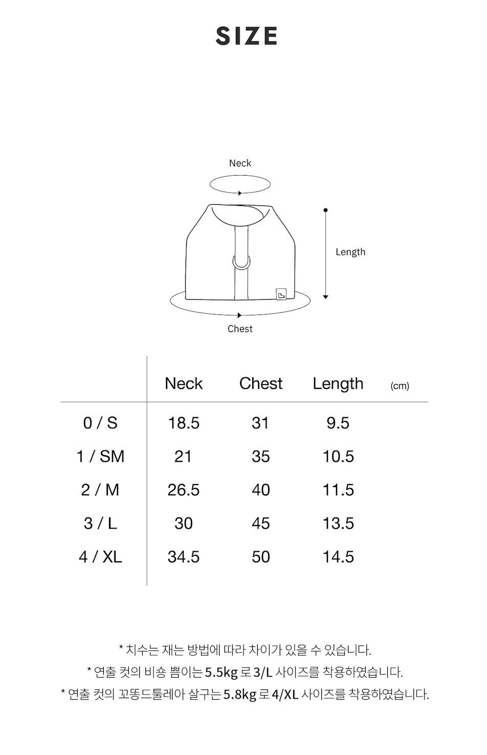 목부분과 허리부분에 벨크로를 이용해 사이즈 조정이 가능하며, 반려견의 신체에 무리가 가지 않도록 제작되었습니다.