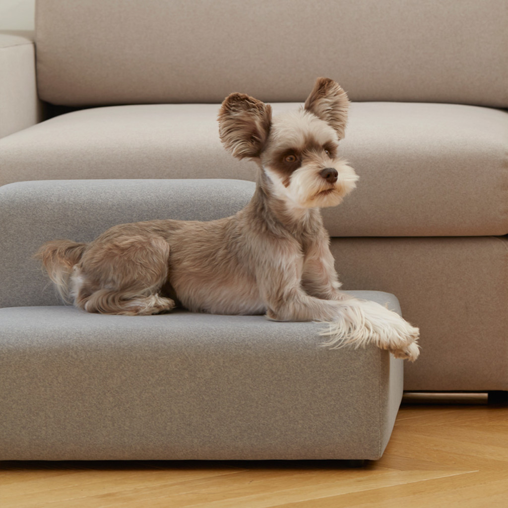 잠시 휴식할 수 있는 소파와 디딤대로 사용 할 수 있는 스텝, 두 가지 기능을 가지고 있는 제품으로 스텝 1층에서 휴식하기를 좋아하는 반려견들과 기존의 스텝 폭이 작게 느껴지는 중형견이 사용하기에 적합한 제품입니다.