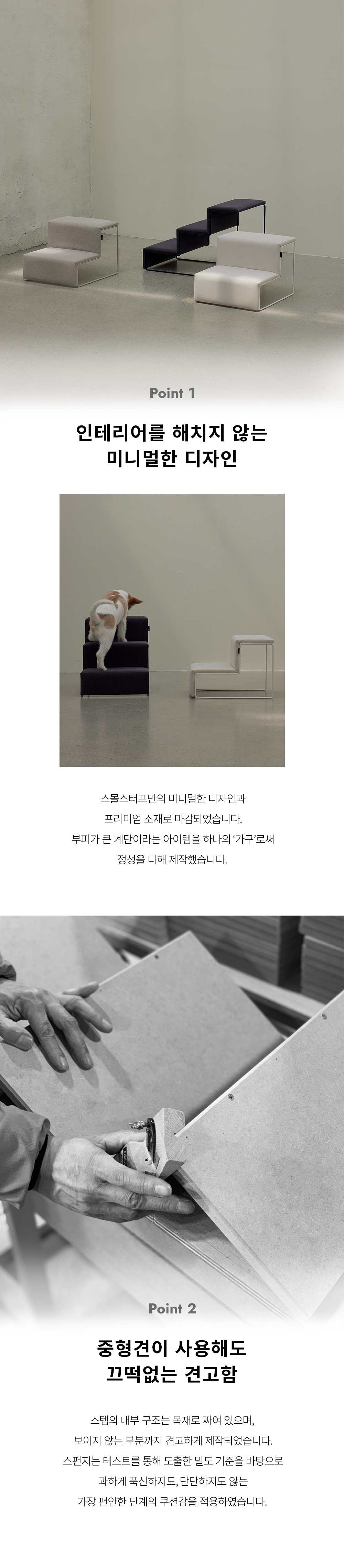 소형견의 60%가 발생하는 슬개골 탈구에 치명적인 점프습관을 방지할 수 있고, 자견, 노견의 관절에 무리를 덜어줍니다.